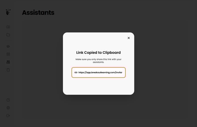 Please follow the steps below to invite assistants on app.breakoutlearning.com: