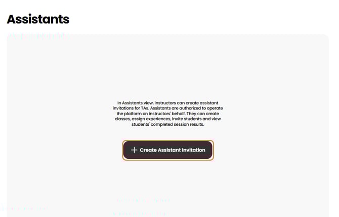 2. This will take you to the Assistants page. Click on Create Assistant Invitation.