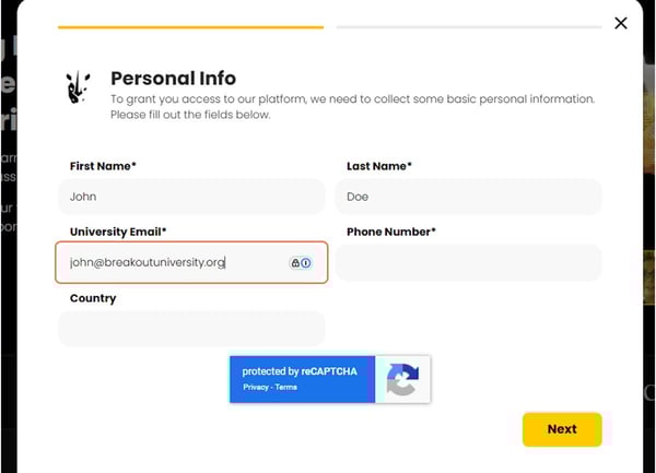 4. Enter an institutional email address, if possible, as this accelerates the verification process